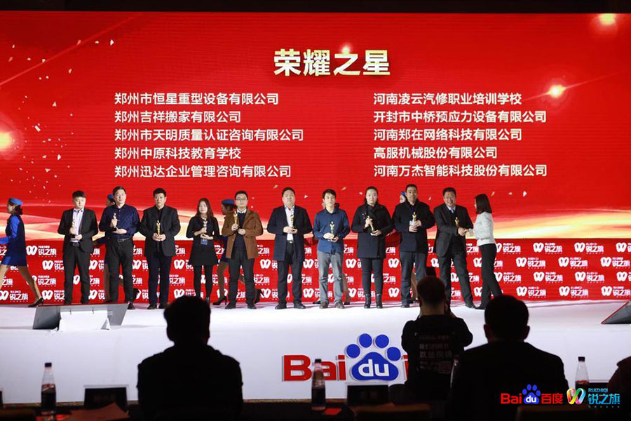 2016年12月21日下午,“旗航計劃,你能觸到的未來——2016百度年度客戶答謝會暨2017銳之旗戰(zhàn)略發(fā)布會”在鄭州美盛喜來登酒店開幕。新鄉(xiāng)高服機械股份有限公司在會議中被評為“榮耀之星”,以表彰高服在互聯(lián)網(wǎng)大潮中的驚艷表現(xiàn)。