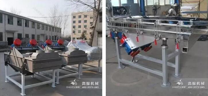 所以直線篩適合很多物料的分級,特別是粗粒度段大產量的分級篩選。例如我們對貓哆哩食品三角糕的果泥篩分,此物料粘性大,容易堵網和排料不暢,但使用我們的篩格式直線振動篩,徹底解決了篩分的難題。