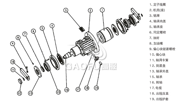 特制電機(jī)由特制定子線包和轉(zhuǎn)子軸組成,能承受高頻振動;立式振動電機(jī),采用兩塊偏心塊作為激振塊,兩軸端各—塊,上軸端為固定偏心塊,下軸端為可調(diào)偏心塊。在上下偏心塊的端部各裝有一組配重塊,通過調(diào)節(jié)配重塊的數(shù)量,可以分級調(diào)節(jié)振動電機(jī)的激振力;臥式振動電機(jī)采用四塊扇形偏心塊作激振塊,調(diào)節(jié)同軸端兩塊偏心塊的夾角,可以從零至最大調(diào)節(jié)振動電機(jī)的激振力。